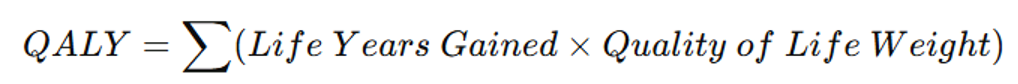 Using the formula, a treatment that delivers 3 additional years at a utility score of 0.8 yields 2.4 QALYs.